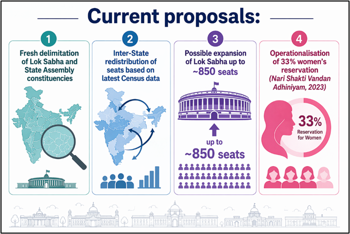 The Union Government has proposed a major legislative package comprising the Constitution (131st Amendment) Bill, 2026 and the Delimitation Bill, 2026, aimed at restructuring India’s system of political representation.