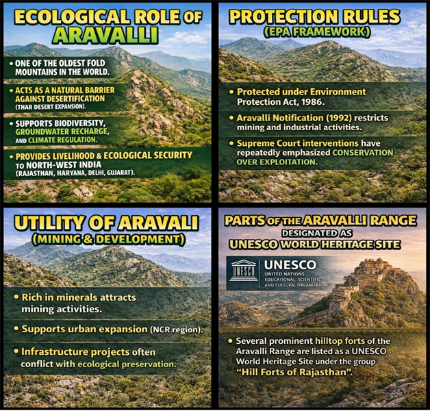 Paper: GS – III, Subject: Environment and Ecology, Topic: Biodiversity and its Conservation, Issue: Aravalli Hills Ecological Debate.
