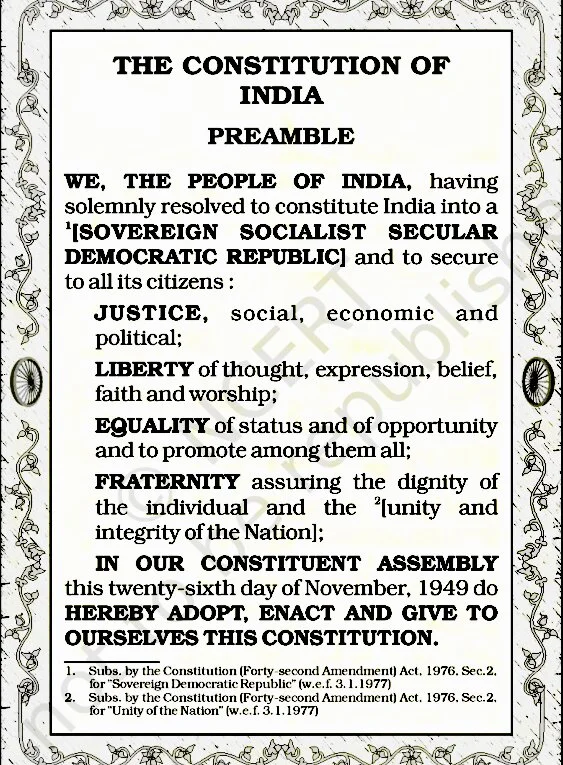WE, THE PEOPLE OF INDIA, having solemnly resolved to constitute India into a SOVEREIGN SOCIALIST SECULAR DEMOCRATIC REPUBLIC and to secure to all its citizens: