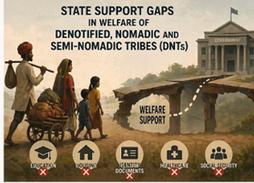 Context: The Union Social Justice Ministry’s 2025–26 report highlights inadequate support from State governments in extending welfare benefits to Denotified, Nomadic and Semi-Nomadic Tribes (DNTs). Issues such as lack of community certificates and incomplete identification continue to hinder their access to schemes.