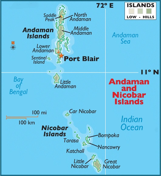- Island features: Tropical wet evergreen forests, hills up to 650 m, coastal plains.